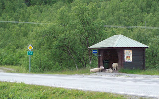 Back on the of the E6 we turn toward Alta and notice some of the Trollholmsund residents at the bus stop!