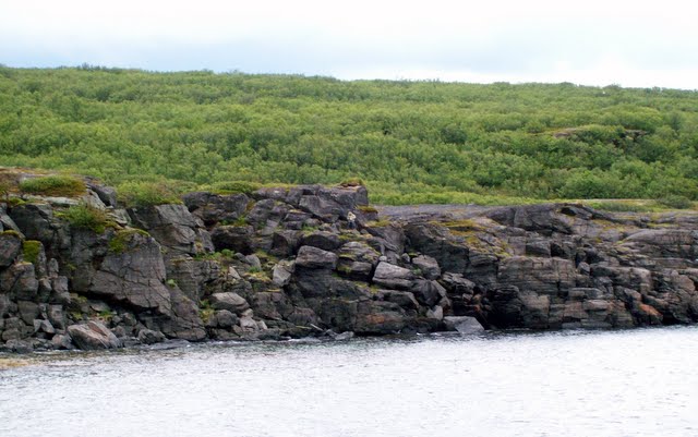 We had heard that some huge Trolls had been turned to stone in Trollholmsund next to the Porsangerfjorden. About 35k North of lakselv on the E6, we took the detour of about 10k and walked a 15 minute trail around the fjord to see the ‘Trolls’ made of stone’. The Town and location of Trollholmsund was incredibly peaceful. The only residents we saw were sheep and the walk around the crystal clear water, cliffs and farmhouses to the trolls was magnificent.
