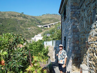 We got off the train a stop to early in Manarola, Not a problem explored the town for a while and headed off toward Riomaggiore on foot. Did not know where the trail started howvever as we walked up out of the village Trish saw a red and white trail marker and some arrows on the road, so off we went following the markers.