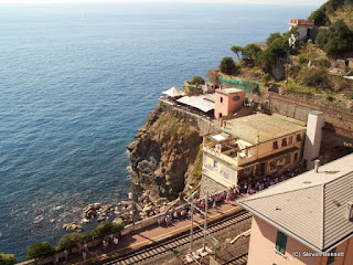 On the way down we could see a flat concrete footpath going around the base of the cliffs with tourists casually strolling between the towns.