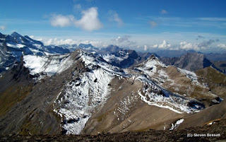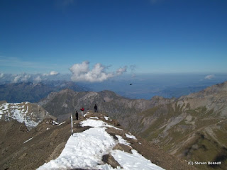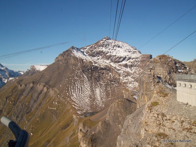 The latest cable car for the breakfast departed at 08:50 so we were up early, packed a backpack with warm clothes and walked down the road to Stechelberg for the three cable car trip to the top. As did not want to miss the breakfast we headed straight for the top quickly changing well timed cable cars at Gimmelwald, Murren and Grig. We would take our time on the way back to spend more time in each on the way back down. (you can click on the photos to make them bigger, back button to return)