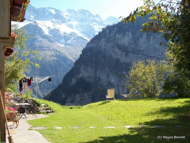 After Trish had recovered we took a short walk and decided to go lower to the town of Gimmelwald. We were keen to see this mountain farming community village as we liked what we read in reviews on the net. See http://www.ricksteves.com/plan/destinations/switz/gimbd.htm It Gimmelwald should not be confused with Grindelwald a famous tourist resort in the next valley.