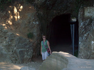 This is a 3 tired section of the Uzes to Nimes aqueduct, spanning the river Gardon, it is made of massive stones without mortar, still standing after 2000 years. We explored the aqueduct and also walked through the (150m) tunnel through solid rock Romans put the aqueduct through as it came off the bridge.