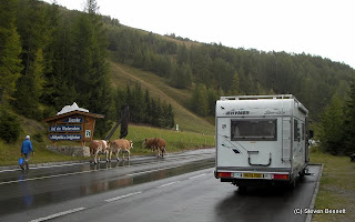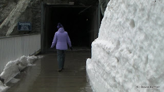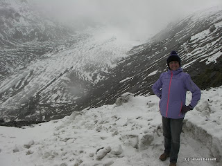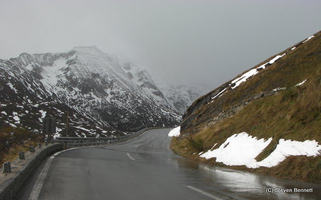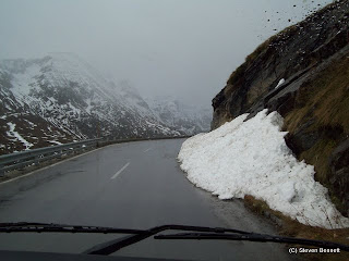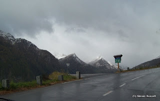 The view back down the valley on the long ascent was indeed magnificent but it was not long before we were driving in and out of the clouds, light rain showers and then snow showers. The snow steadily got thicker on the ground the higher we went.We arrived at at the Kaiser-Franz-Josefs-Hohe which is where the road ends above the glacier and were virtually the only ones here.