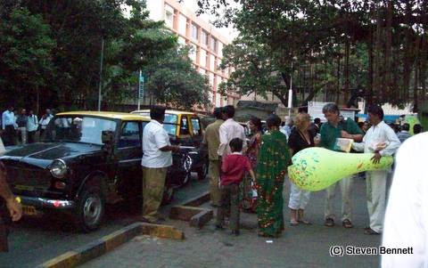 Reaching the square situated on the water’s edge in the area of Colaba we were greeted with the sight of the famous ‘Gateway to India‘ monument and the ‘Taj Mahal Hotel’ The gate stands 84 feet high and is where dignitaries in time gone by use to first step ashore. It is a combination of a typical Muslim arch with Hindu-style decorations.