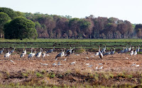 We reached the flood plains and were treated to large flocks of Jabirus and other birds feeding in the last remains of water until the monsoon rains come again.