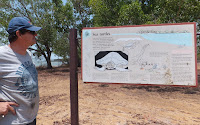 A sign on the gate warned of crocodiles in the area and boxed jelly fish. We have marked this place as a good place to camp overnight in the turtle breeding season to watch the turtles come up the beach and lay their eggs.